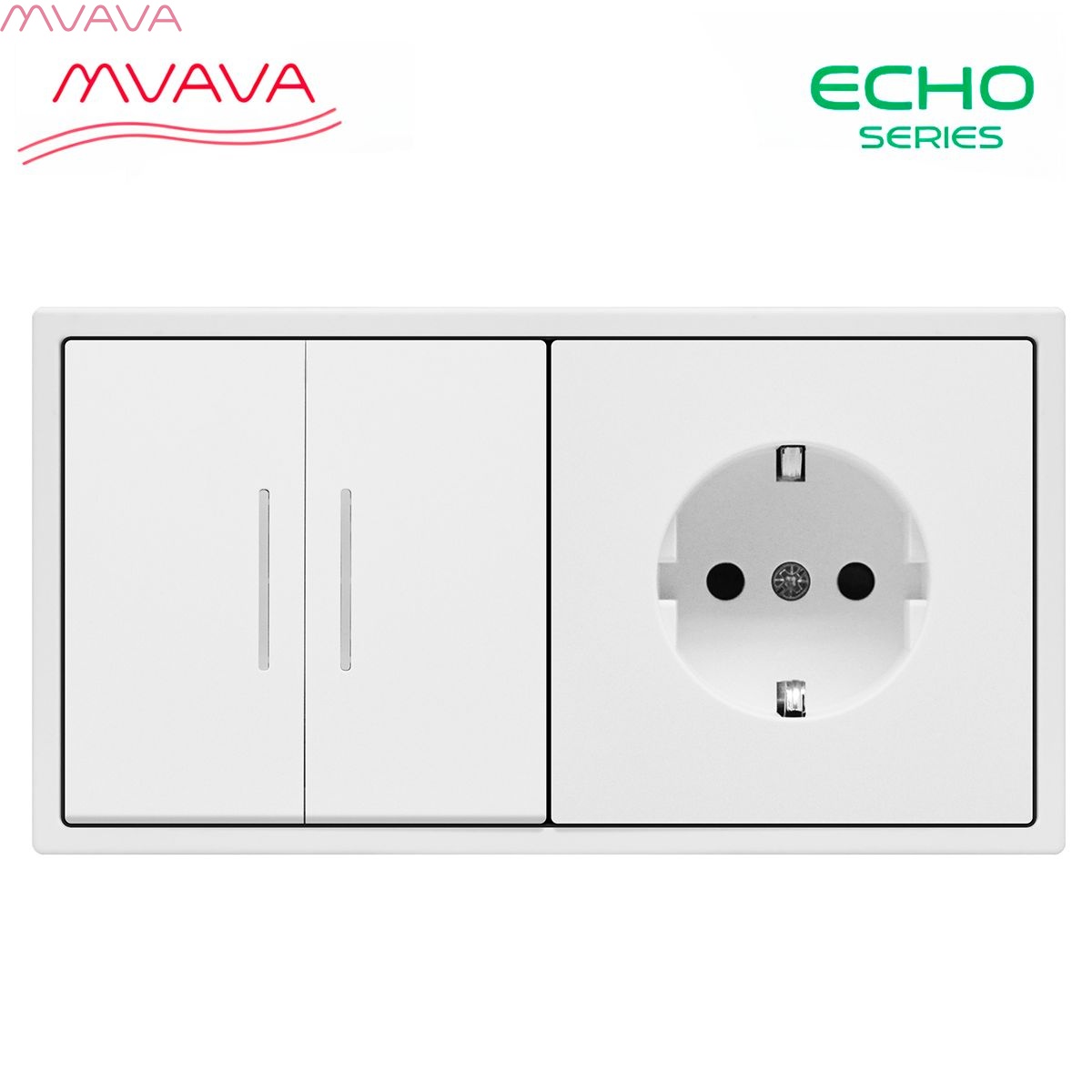 Выключатель echo led, 2 клавиши 1 розетка, 2 поста (М2+1F) рамка пластик 152х81мм цвет белый
