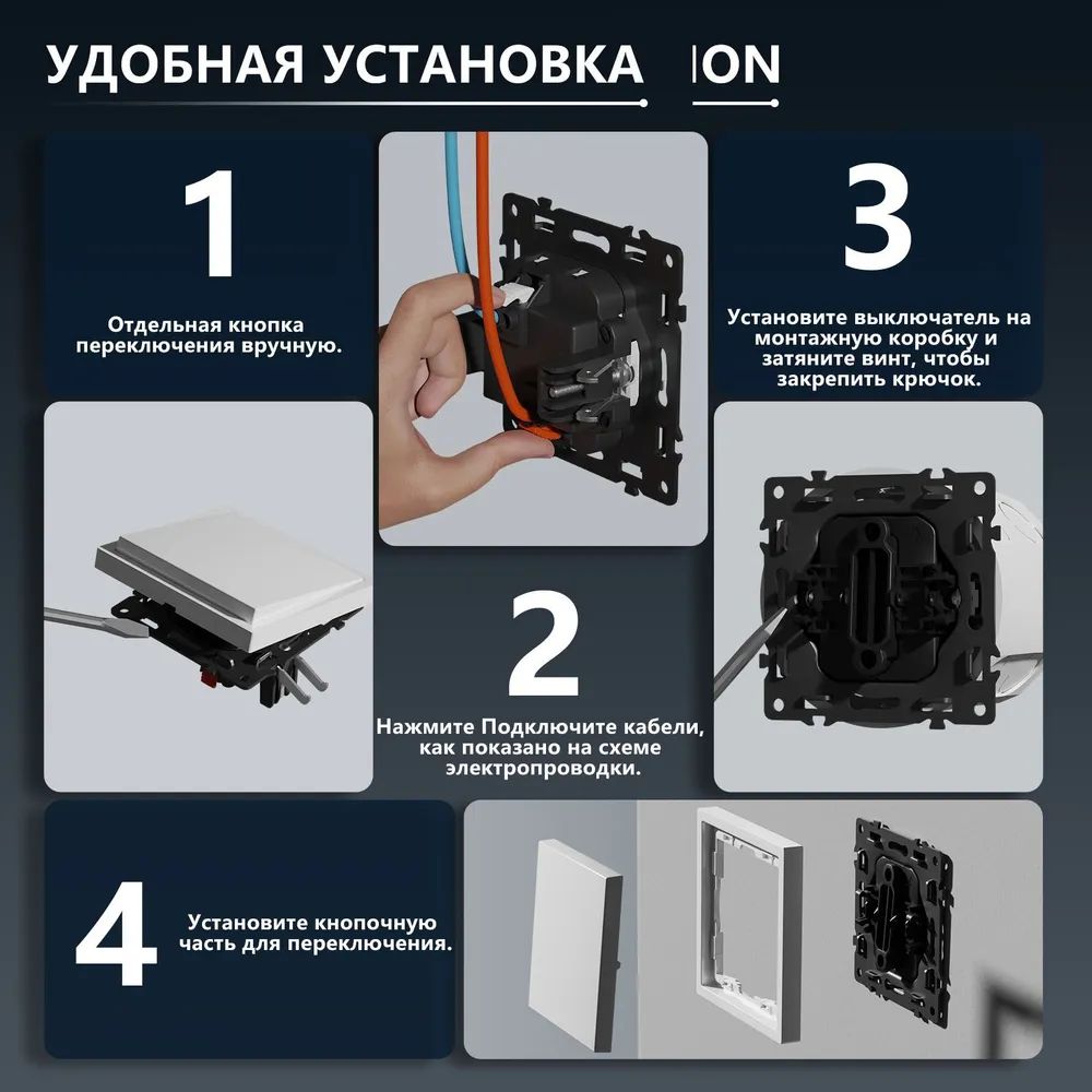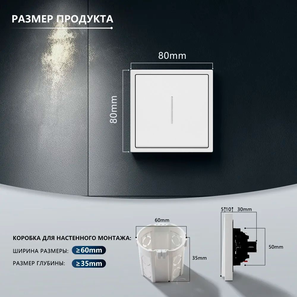 Выключатель echo проходной c подсветкой, 1 клавиша, 1 пост, рамка 81х81мм пластик, цвет белый