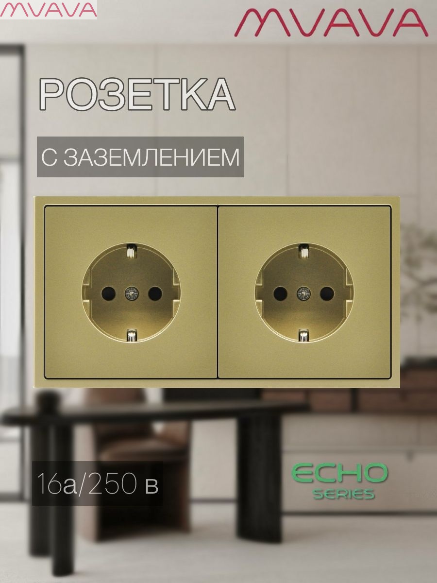 Розетка echo электрическая 2 поста 16А, пластик, цвет золото