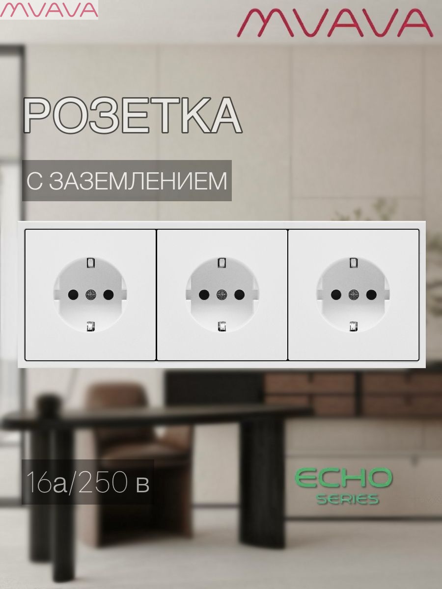 Розетка echo электрическая 3 поста 16А, пластик, цвет белый