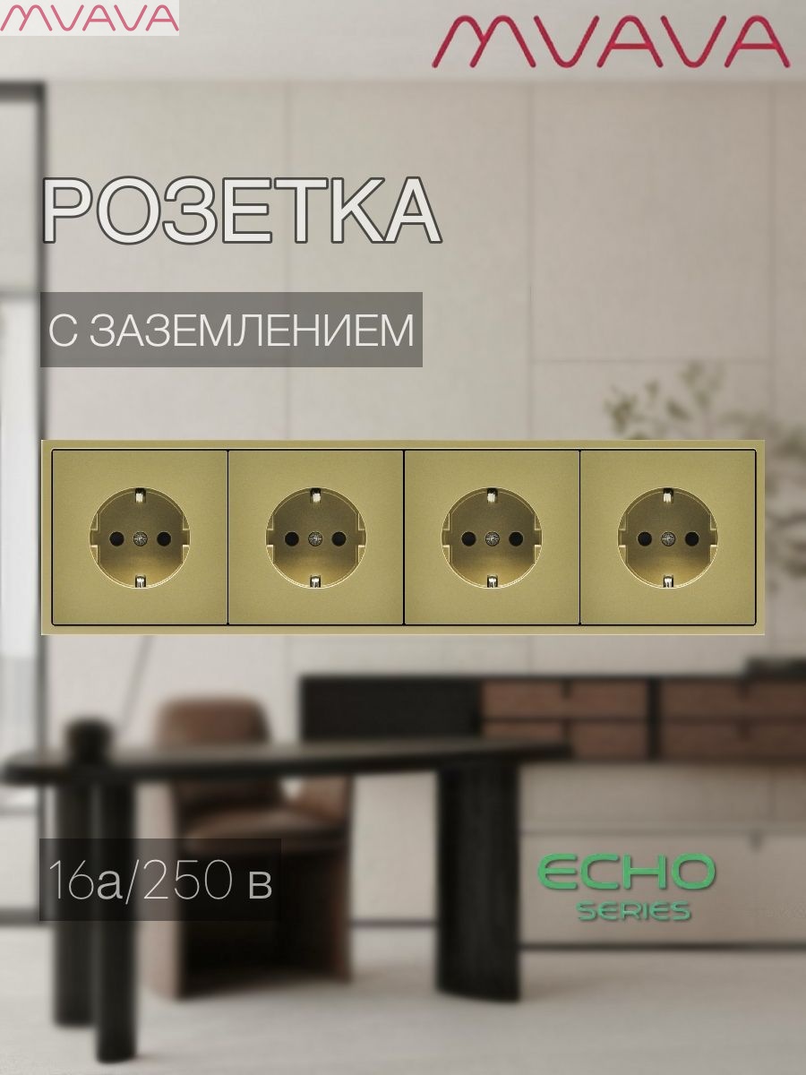 Розетка echo электрическая 4 поста 16А, пластик, цвет золото