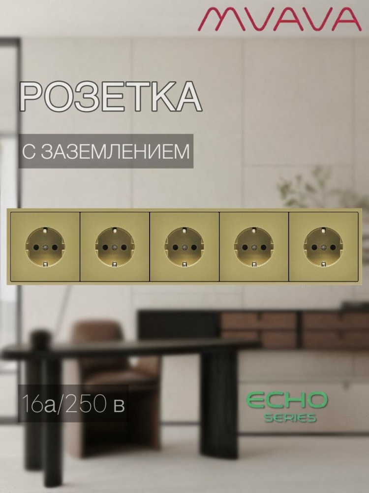 Розетка echo электрическая 5 постов 16А, пластик, цвет золото