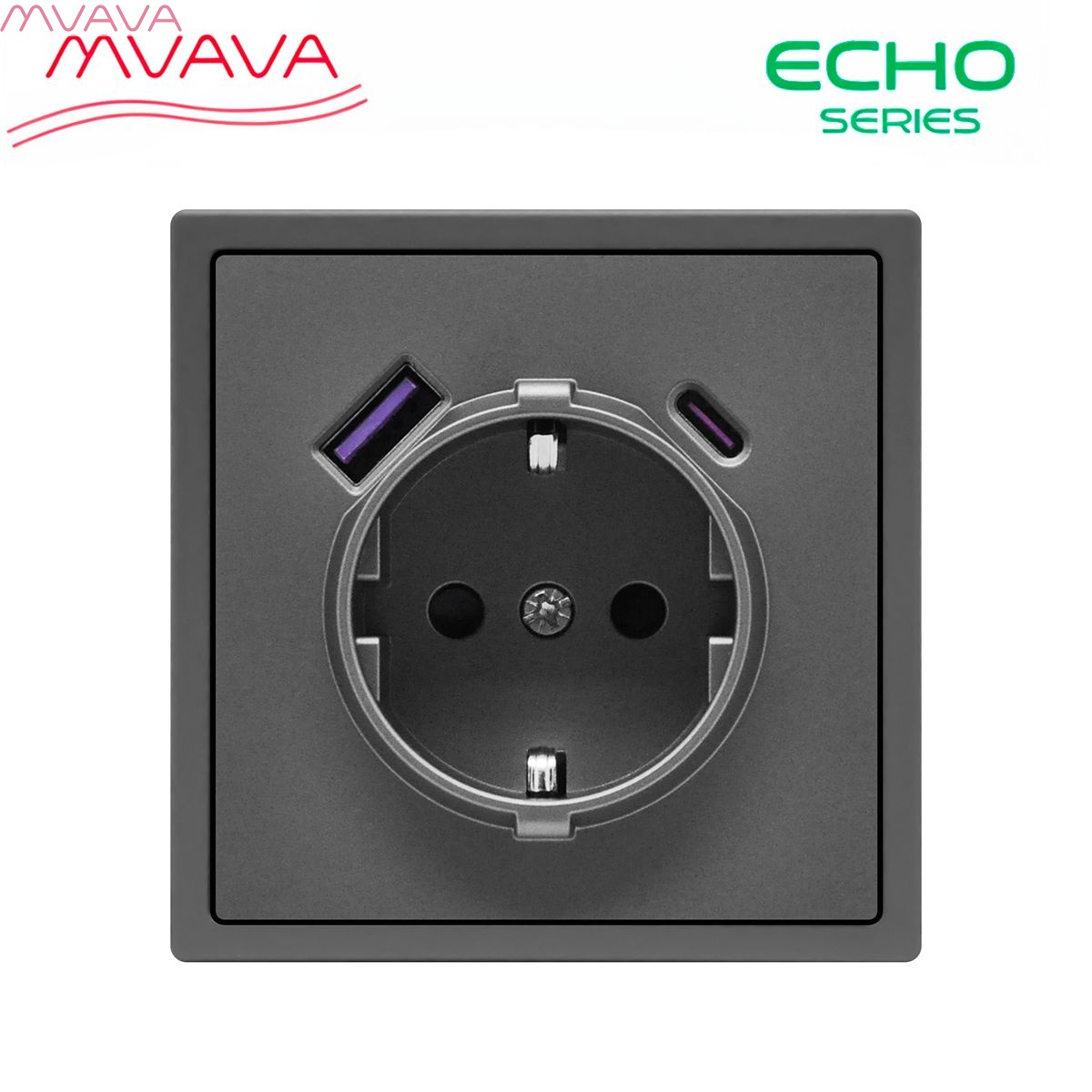 - Розетка электрическая echo с заземлением 220 В 16A, с блоком питания 20W, это новая версия электрической розетки совмещенная с USB и Type-C выходами 5-12V 20W, подходит для быстрой зарядки смартфонов, планшетов и другой электроники, устанавливается в стандартный круглый подрозетник 65-70мм.