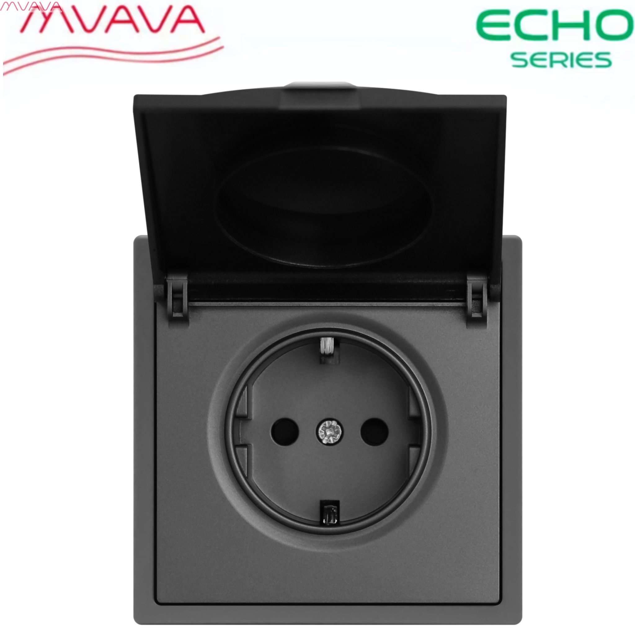 Розетка с крышкой echo 1 пост 16А, пластик, цвет серый