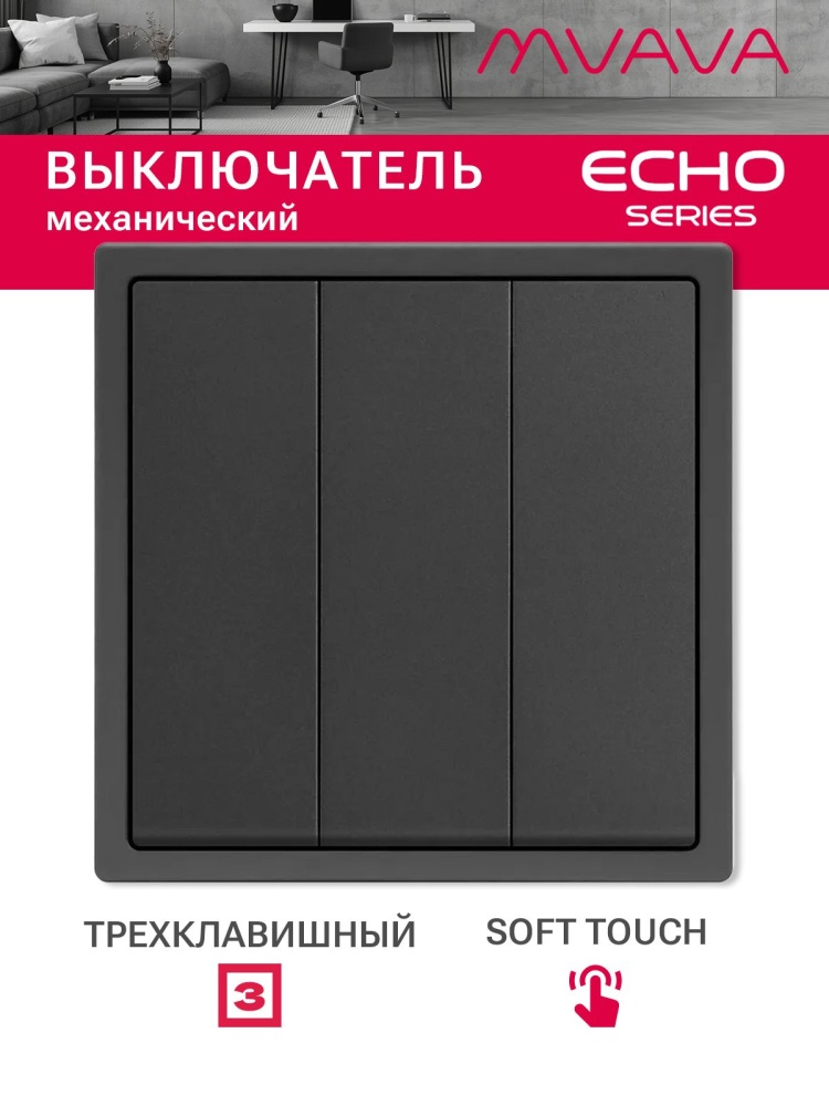 Выключатель echo, 3 клавиши, 1 пост, рамка пластик 81х81мм цвет серый