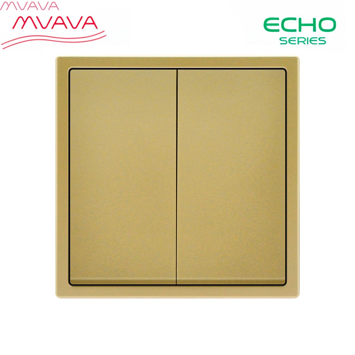 Выключатель echo проходной, 2 клавиши, 1 пост, рамка 81х81мм пластик, цвет золотой