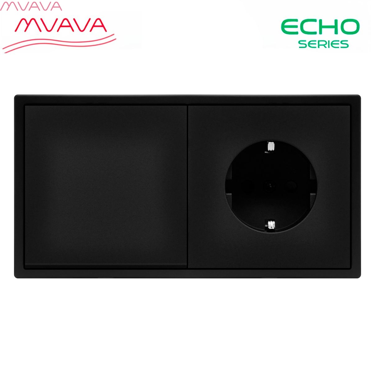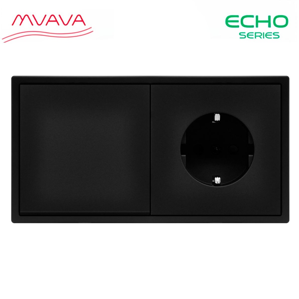 Выключатель echo с розеткой, 1 клавиша 1 розетка, 2 поста (М1+1F) рамка пластик 152х81мм цвет черный