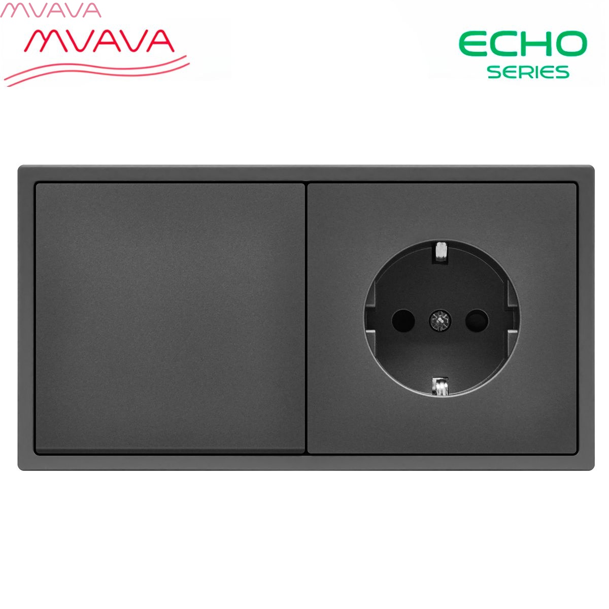 Выключатель echo с розеткой, 1 клавиша 1 розетка, 2 поста (М1+1F) рамка пластик 152х81мм цвет серый
