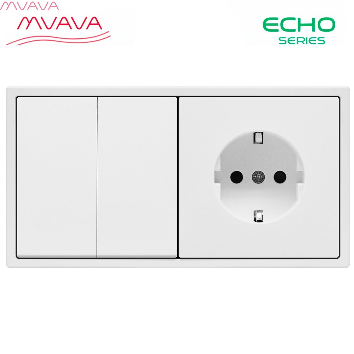 Выключатель echo с розеткой, 2 клавиши 1 розетка, 2 поста (М2+1F) рамка пластик 152х81мм цвет белый
