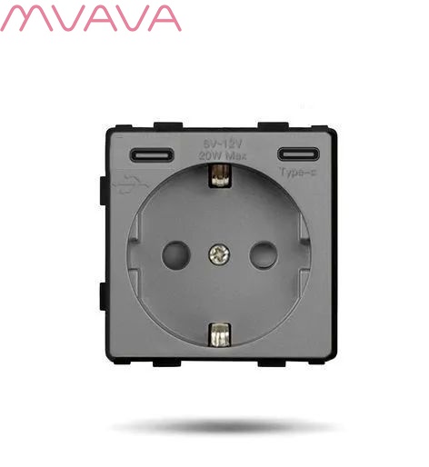 - Механизм розетки с двумя портами Type-C 20W для быстрой зарядки