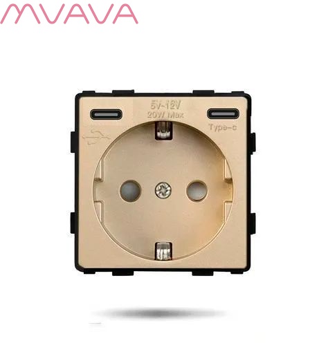- Механизм розетки с двумя портами Type-C 20W для быстрой зарядки