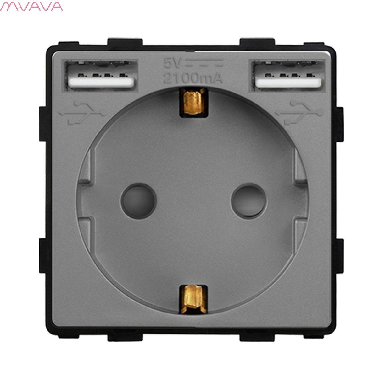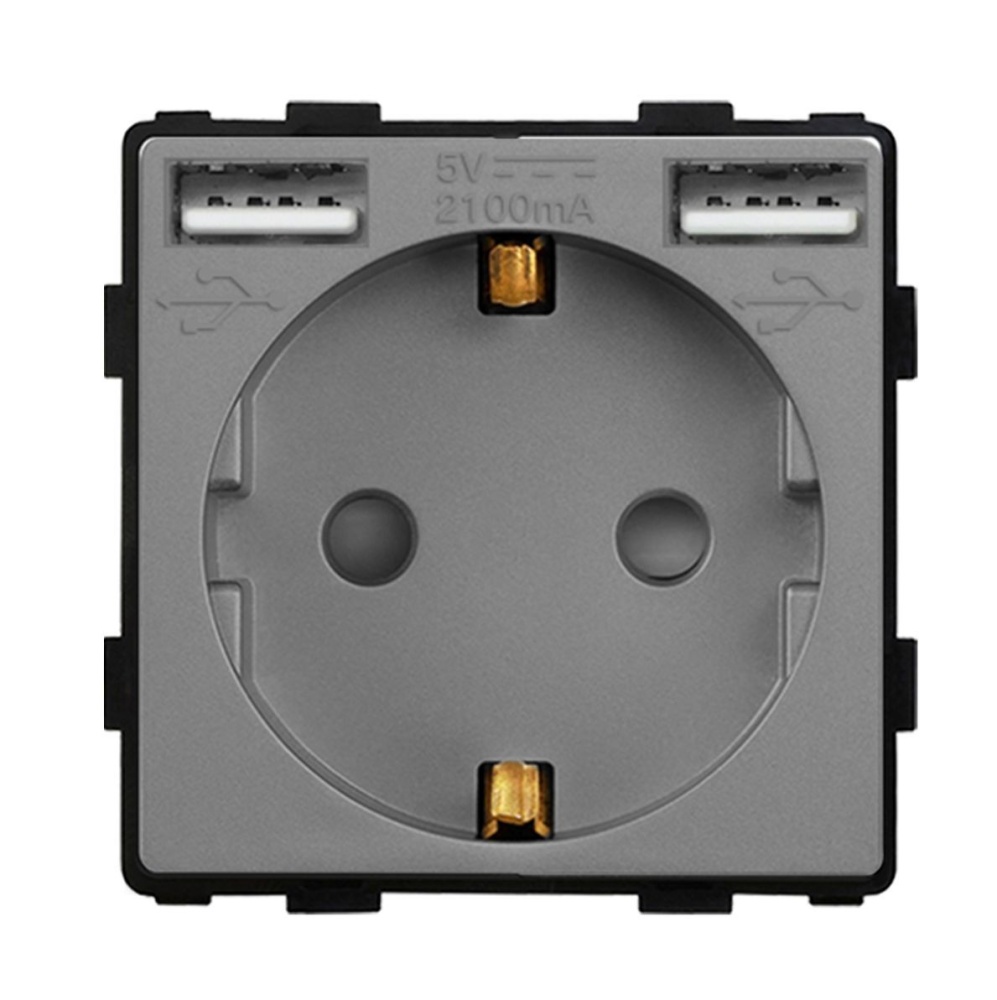 - 86-1F&AA2.4-GY, Механизм розетки с двумя USB портами 5 вольт и выходным током 2.1А, для питания и зарядки электронных устройств.