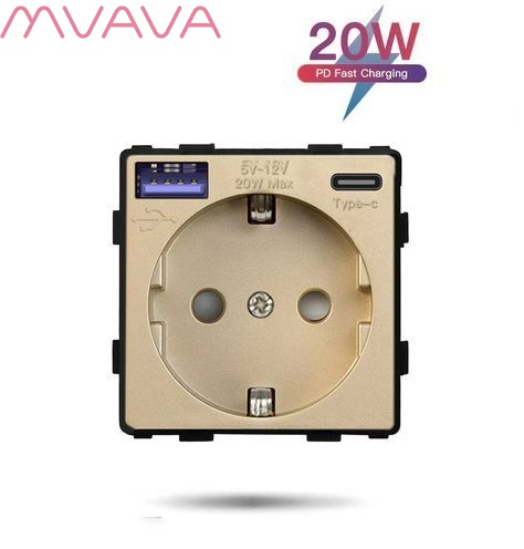 Механизм розетки (без рамки) с Usb/Type-C АC, быстрая зарядка 20W, цвет золотой