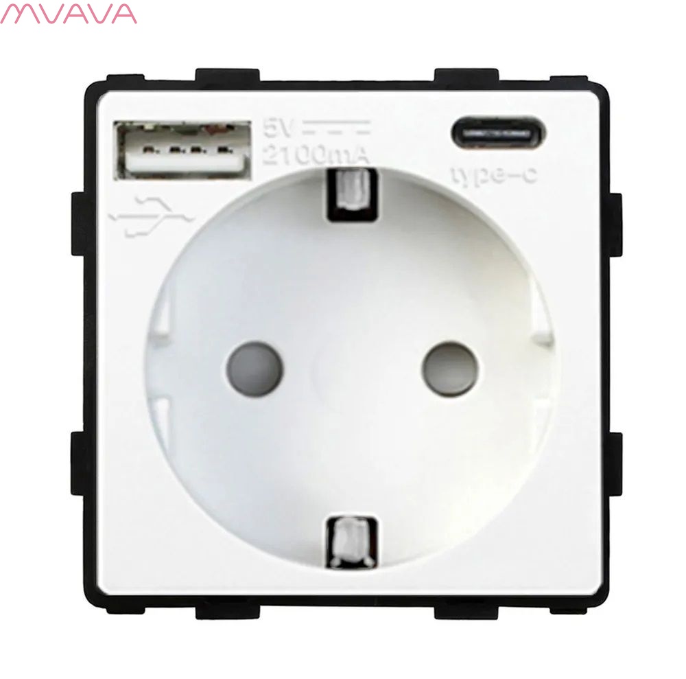 - Механизм розетки с двумя USB и type-С портами 5 вольт и выходным током 2.1А, для питания и зарядки электронных устройств.