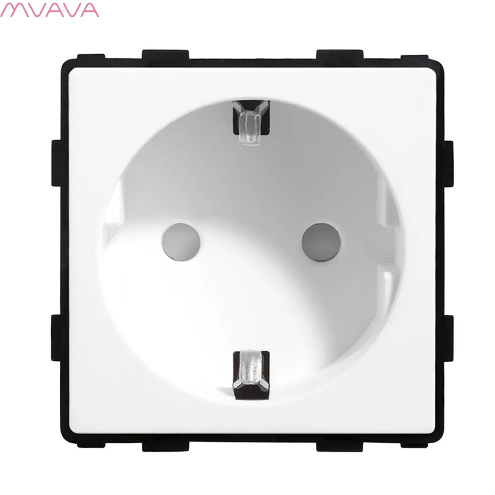 - Механизм розетки с заземлением , защитными шторками, предназначен для сетей 250 В, ток до 16 А.