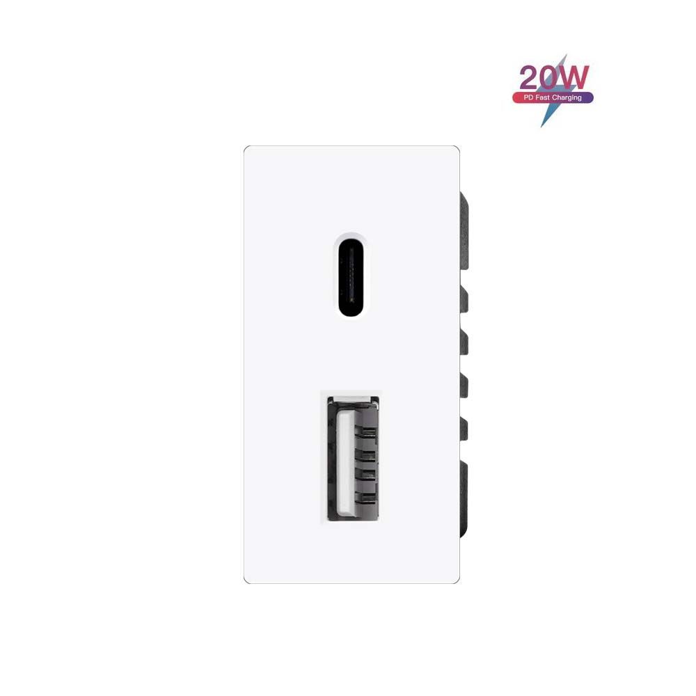 Механизм розетки 1/2 (без рамки) USB АС, быстрая зарядка 20Вт, цвет белый