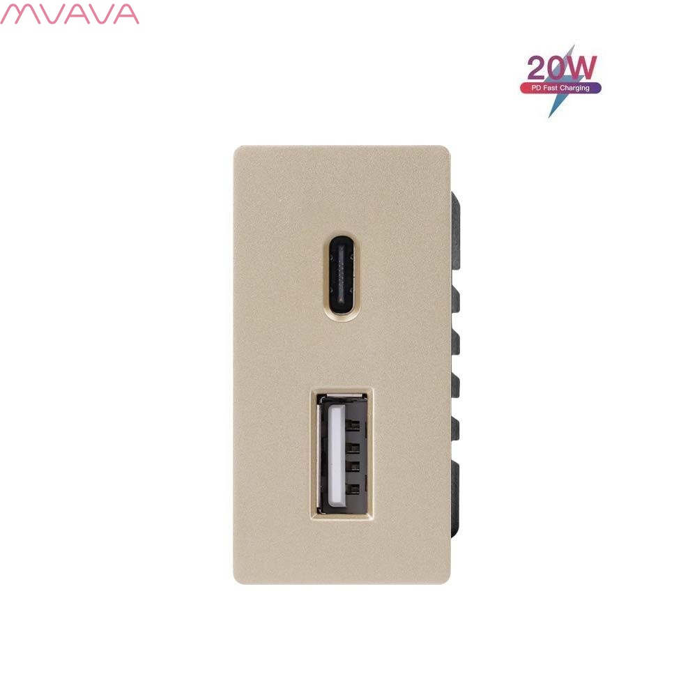 Механизм розетки 1/2 (без рамки) USB АС, быстрая зарядка 20Вт, цвет золотой