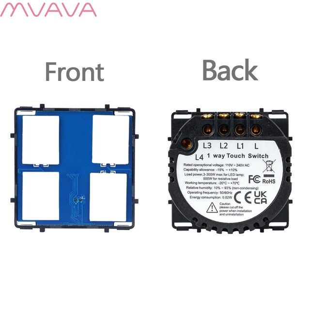 - Модуль сенсорный четырехлинейный, предназначен для управления четырьмя линиями нагрузки, для включения и выключения света вместо нажатия на механическую клавишу производится прикосновение к сенсорной зоне выключателя.