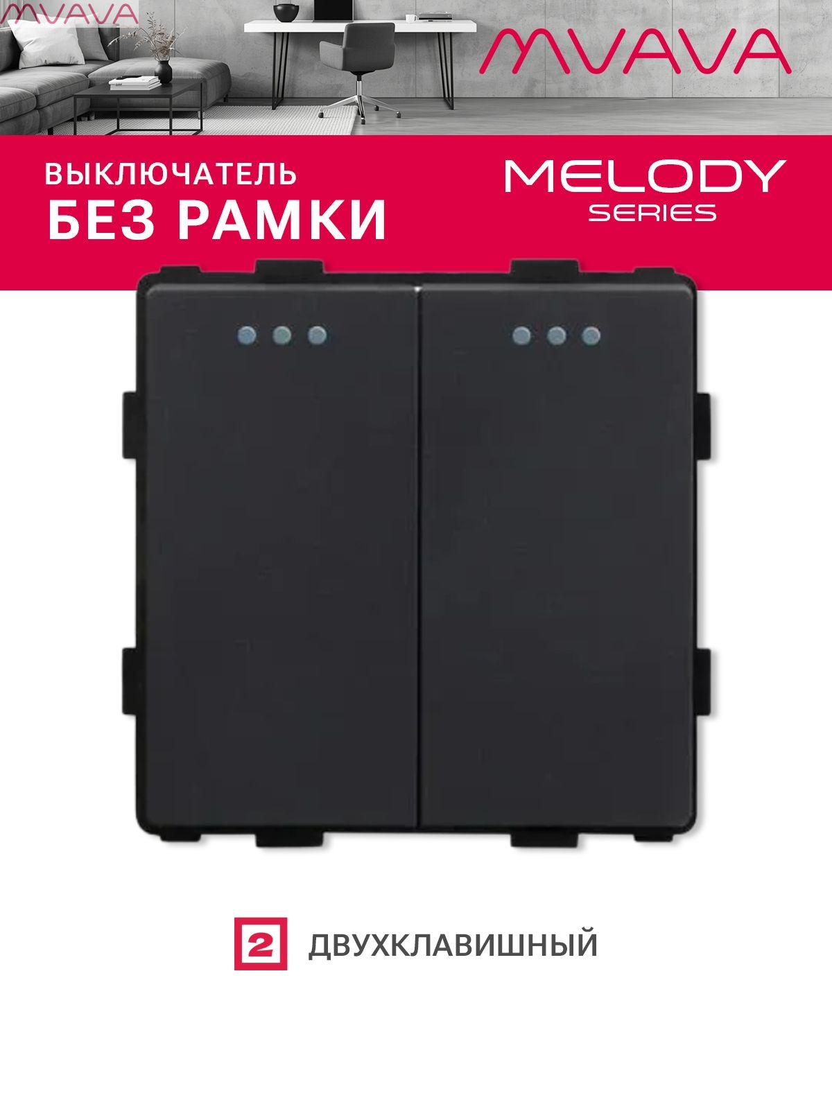 Выключатель, 2 клавиши, (без рамки) цвет черный