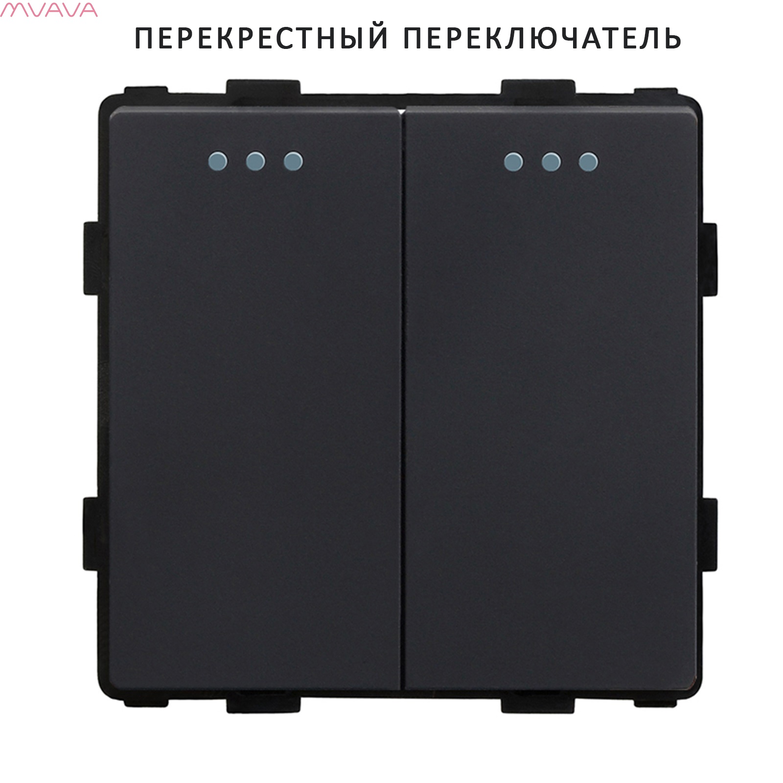 Выключатель перекрестный, 2 клавиши, (без рамки) цвет черный