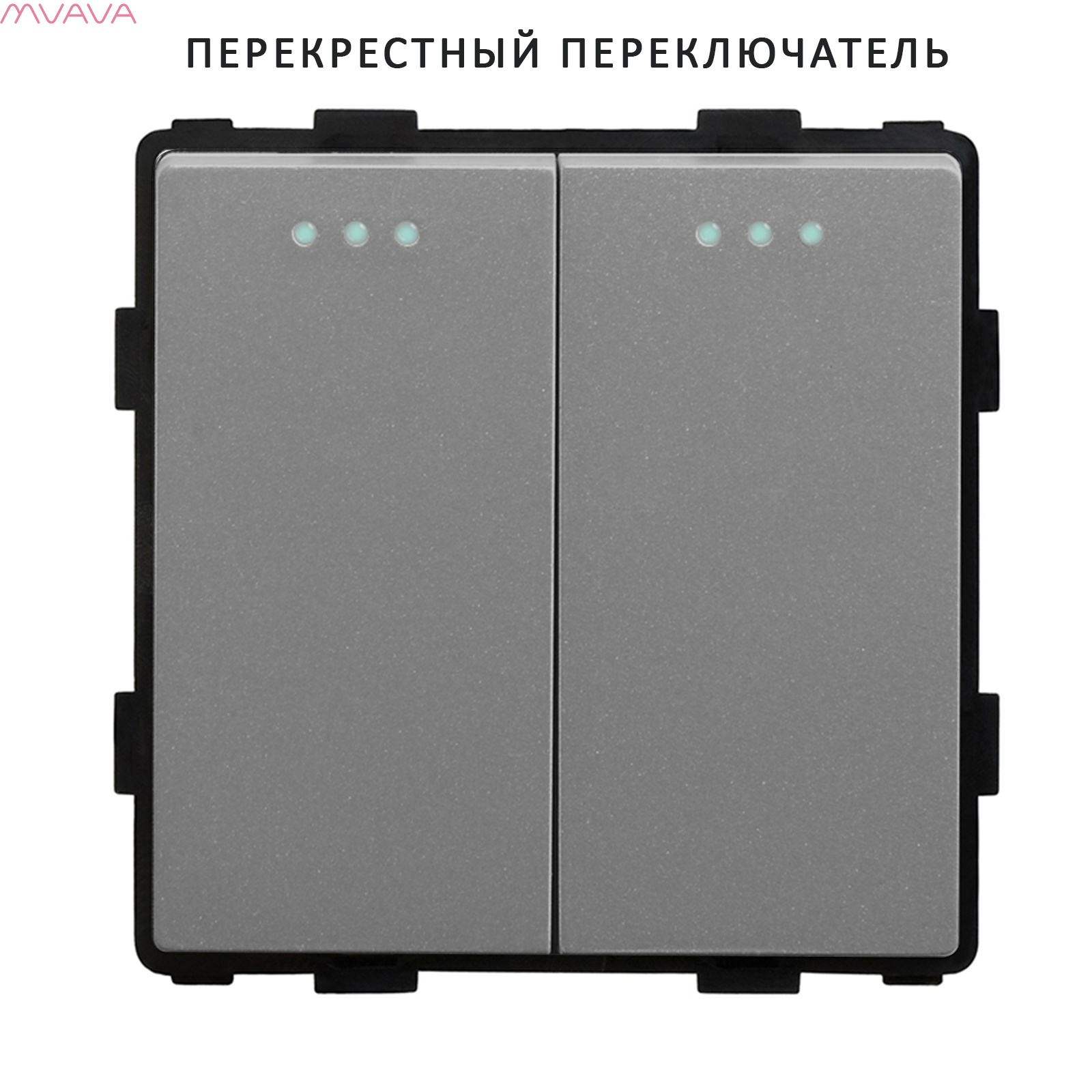 Выключатель перекрестный, 2 клавиши, (без рамки) цвет серый