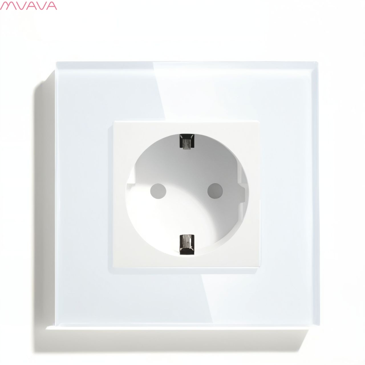 Розетка электрическая 1 пост MVAVA, рамка стекло 86х86мм, цвет белый