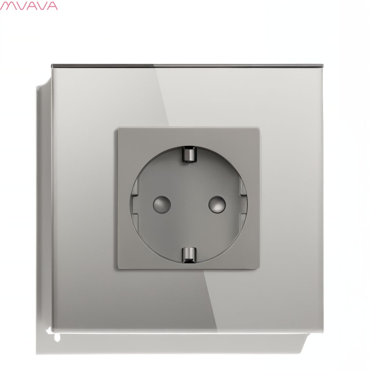 Розетка электрическая 1 пост MVAVA, рамка стекло 86х86мм, цвет серый