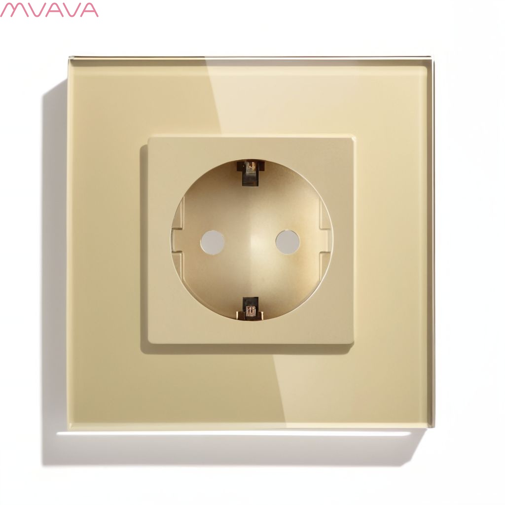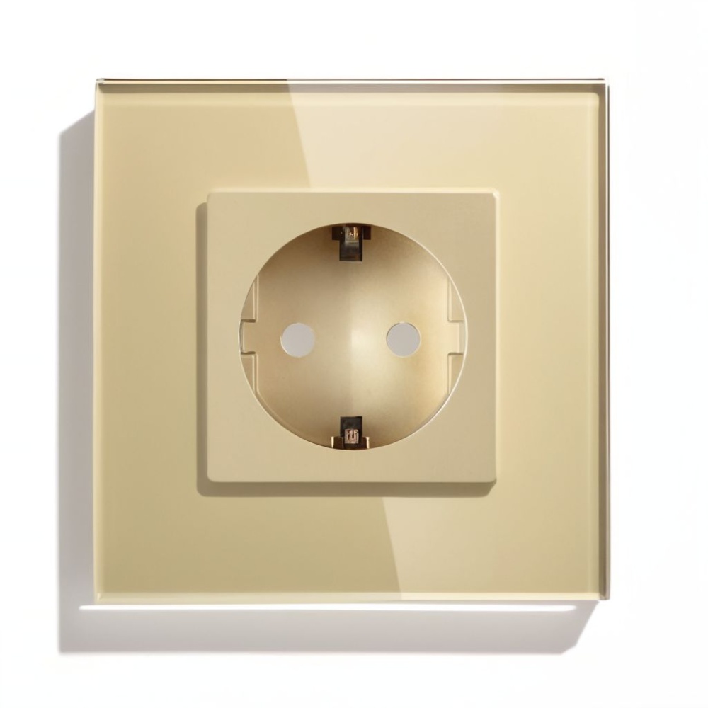 Розетка электрическая 1 пост MVAVA, рамка стекло 86х86мм, цвет золотой