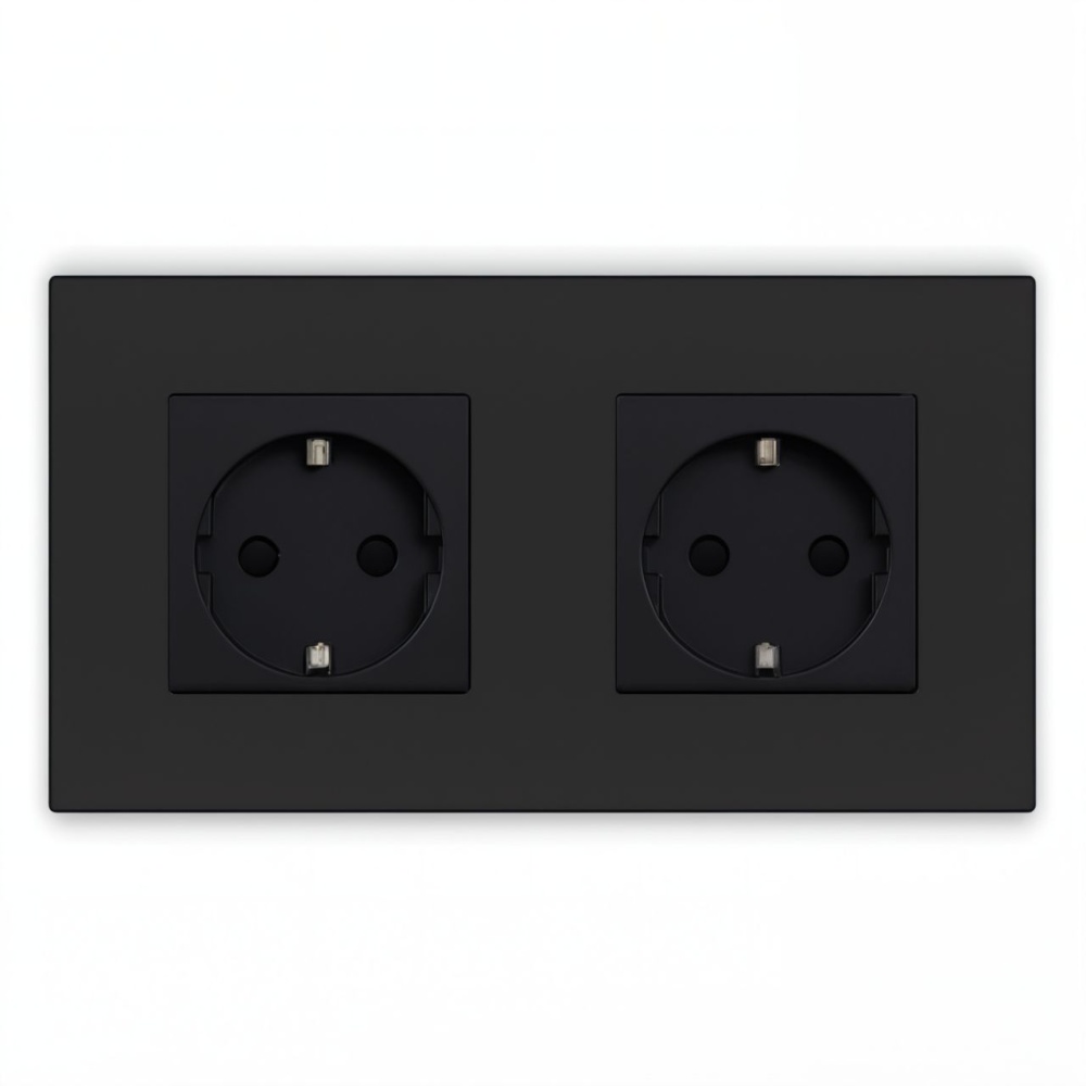 - Розетка двухпостовая в сборе с рамкой 250 В 16 А. Рамка пластик.