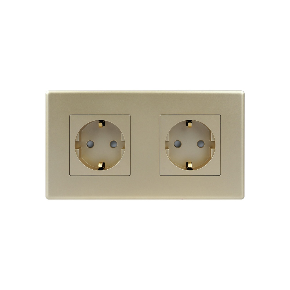 Розетка электрическая 2 поста 16А, рамка157х86мм пластик, цвет золотой