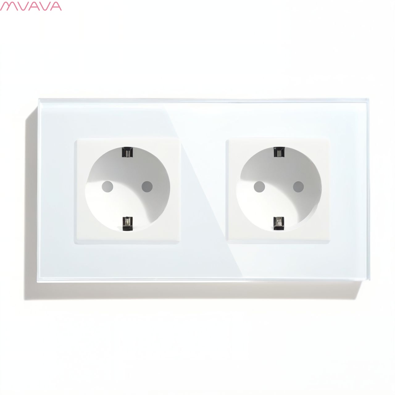 Розетка электрическая 2 поста MVAVA, рамка стекло 157х86мм, цвет белый