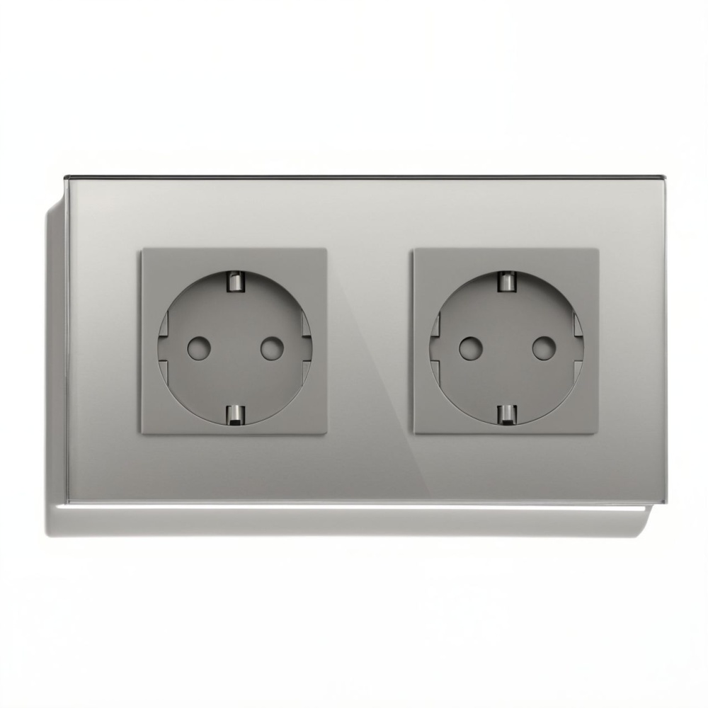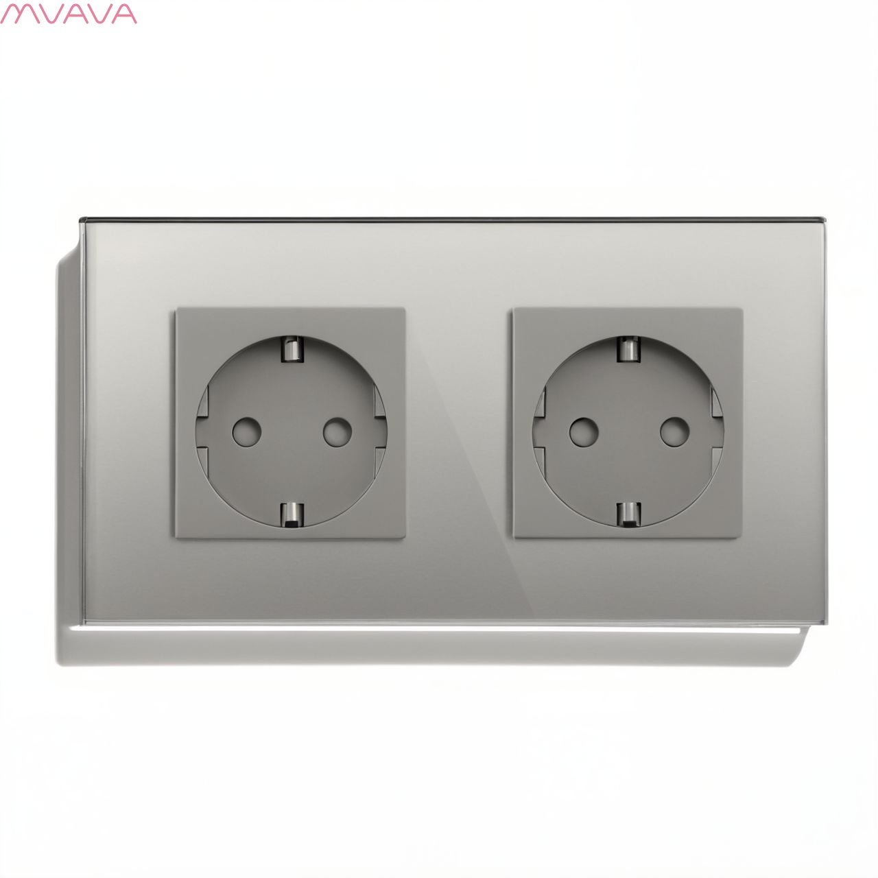 Розетка электрическая 2 поста MVAVA, рамка стекло 157х86мм, цвет серый