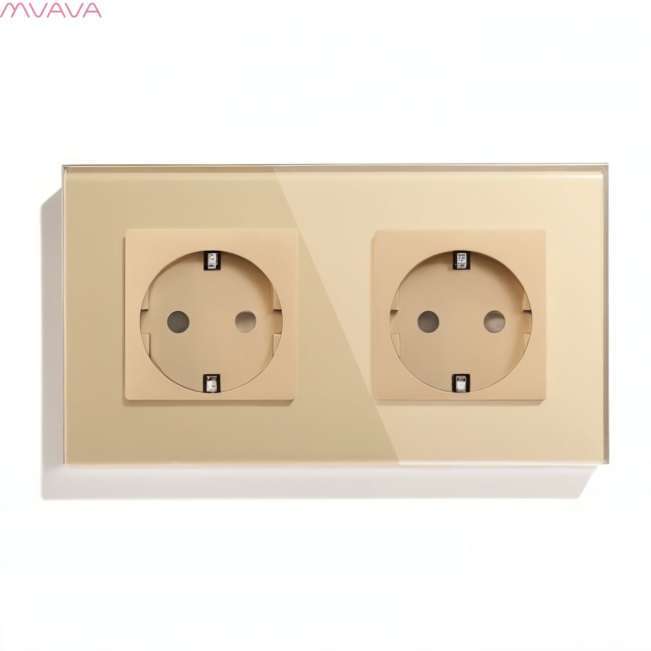 Розетка электрическая 2 поста MVAVA, рамка стекло 157х86мм, цвет золотой