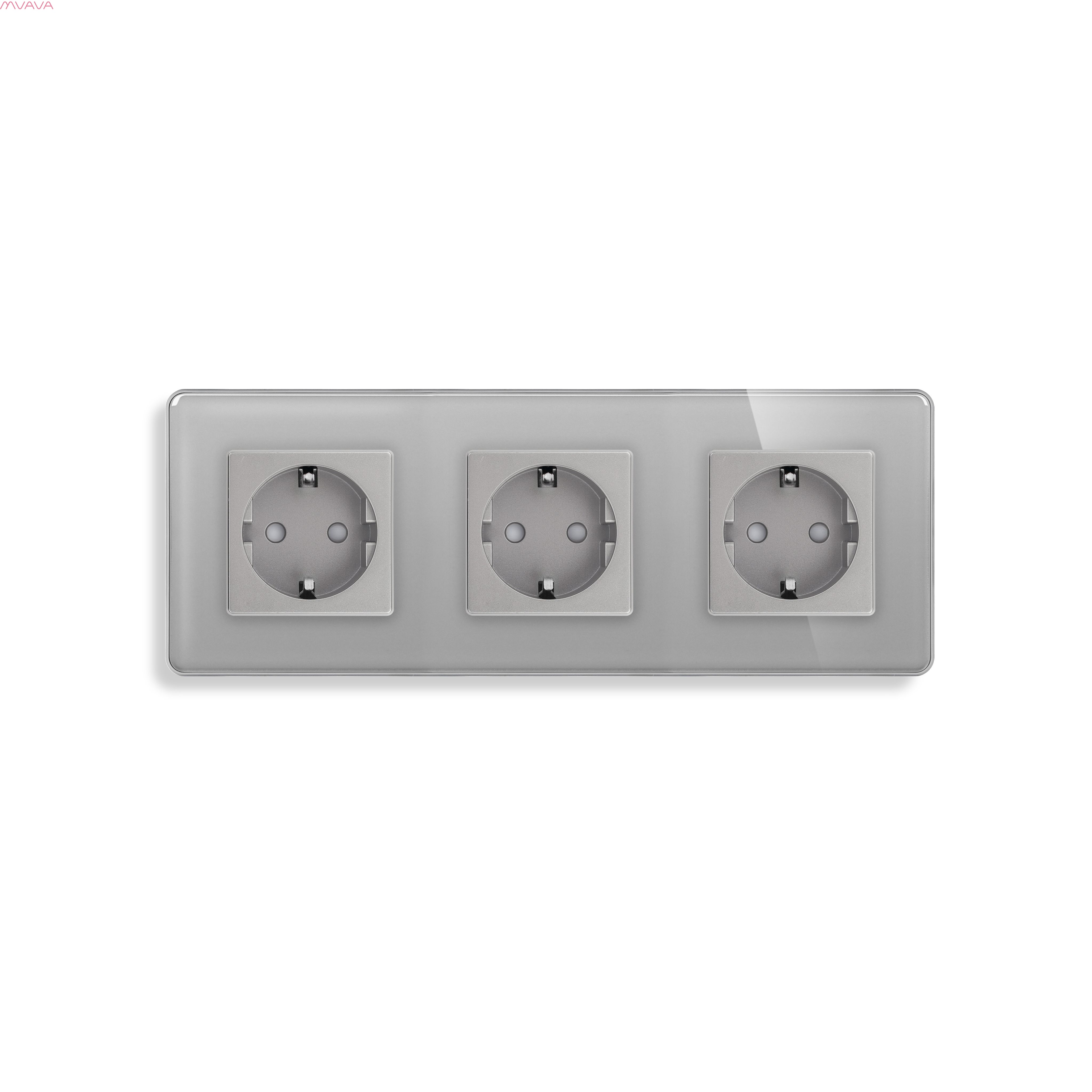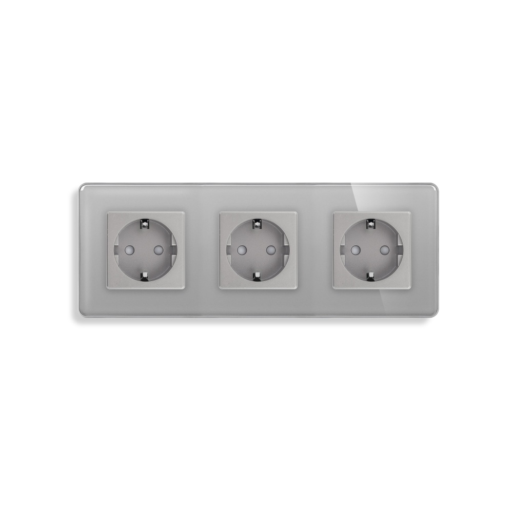Розетка электрическая 3 поста 16А, рамка 228х86мм стекло 2.5D, цвет серый