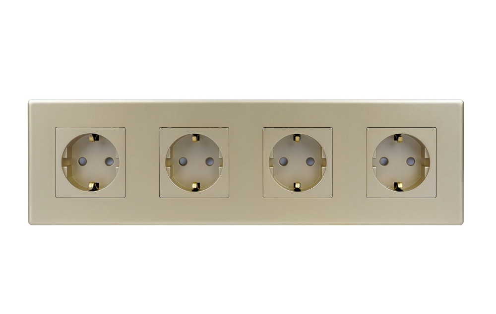 Розетка электрическая 4 поста 16А, рамка299х86мм пластик, цвет золотой