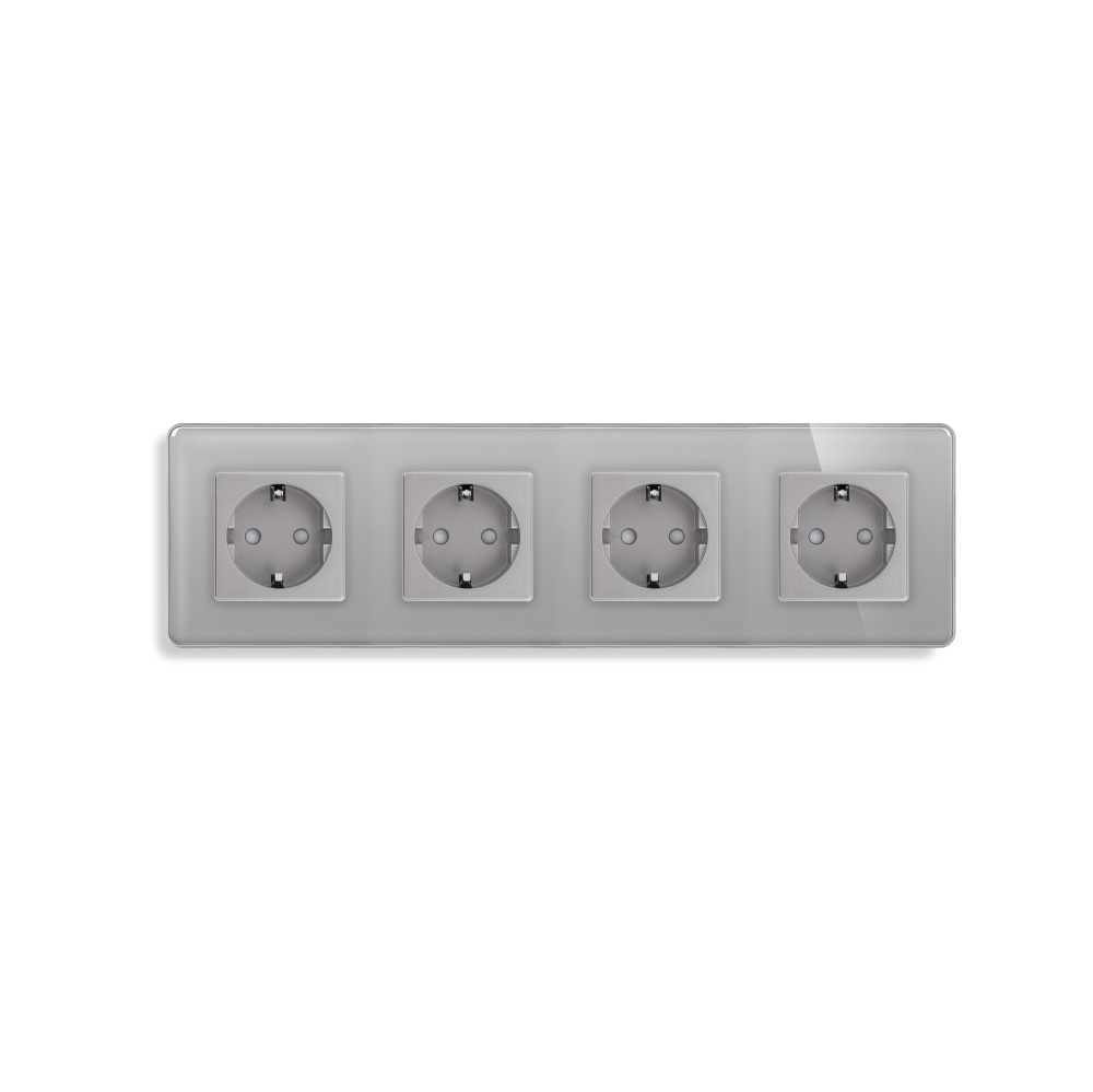 Розетка электрическая 4 поста 16А, рамка 299х86мм стекло 2.5D, цвет серый