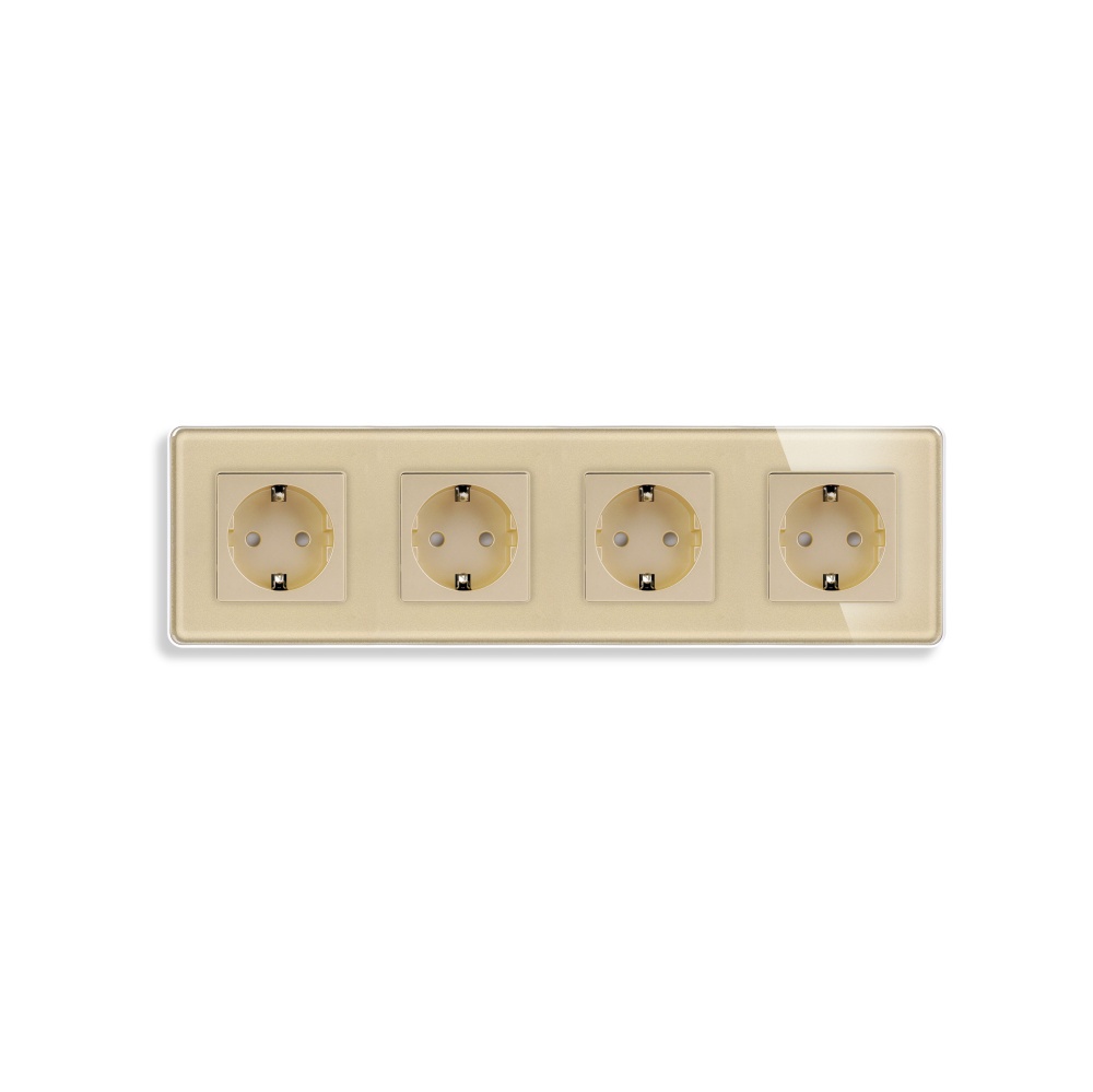 Розетка электрическая 4 поста 16А, рамка 299х86мм стекло 2.5D, цвет золотой
