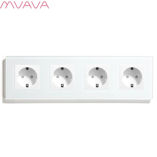 Розетка электрическая 4 поста MVAVA, рамка стекло 299х86мм, цвет белый
