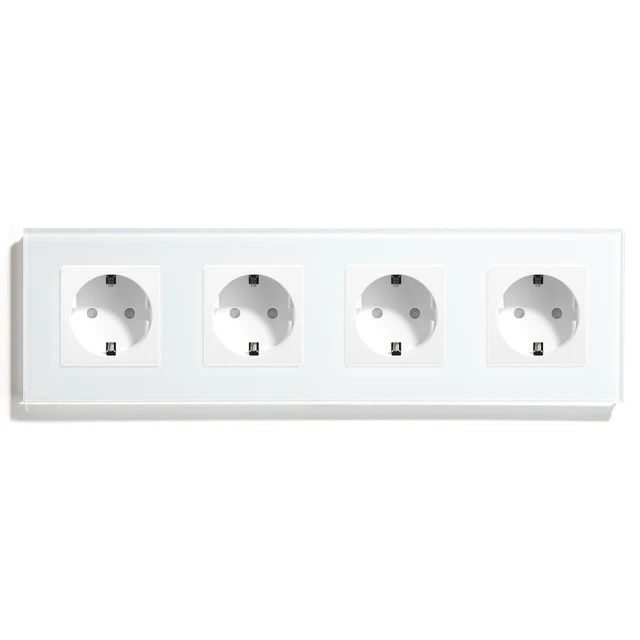 Розетка электрическая 4 поста 16А, рамка 299х86мм стекло, цвет белый