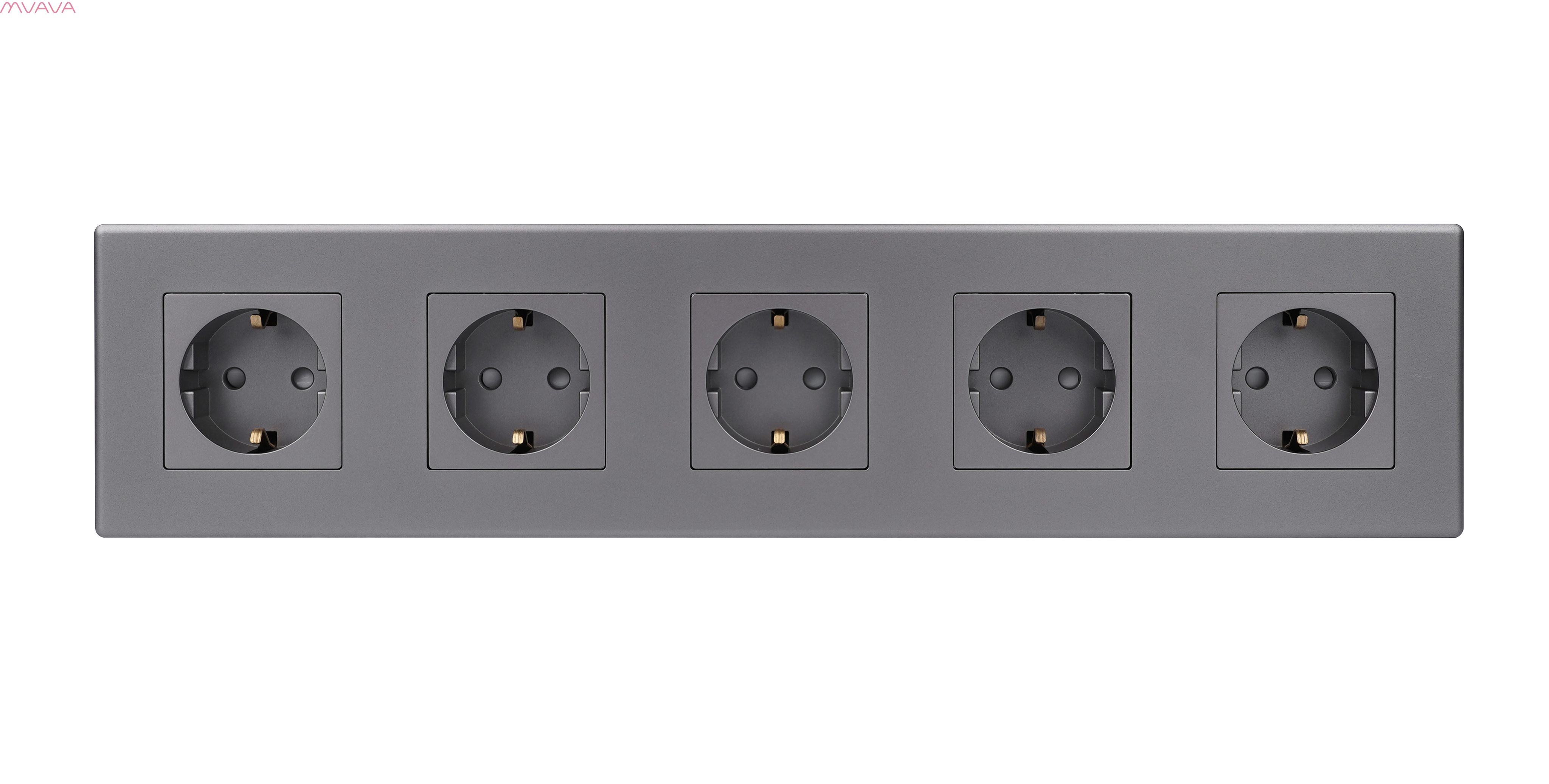 Розетка электрическая 5 постов 16А, рамка370х86мм пластик, цвет серый