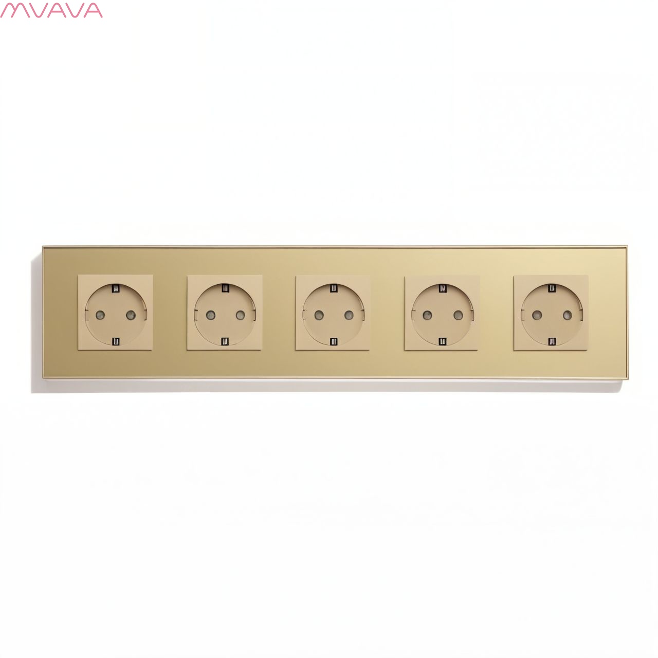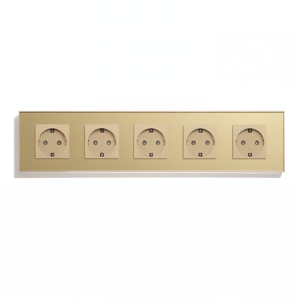 Розетка электрическая 5 постов MVAVA, рамка стекло 370х86мм, цвет золотой