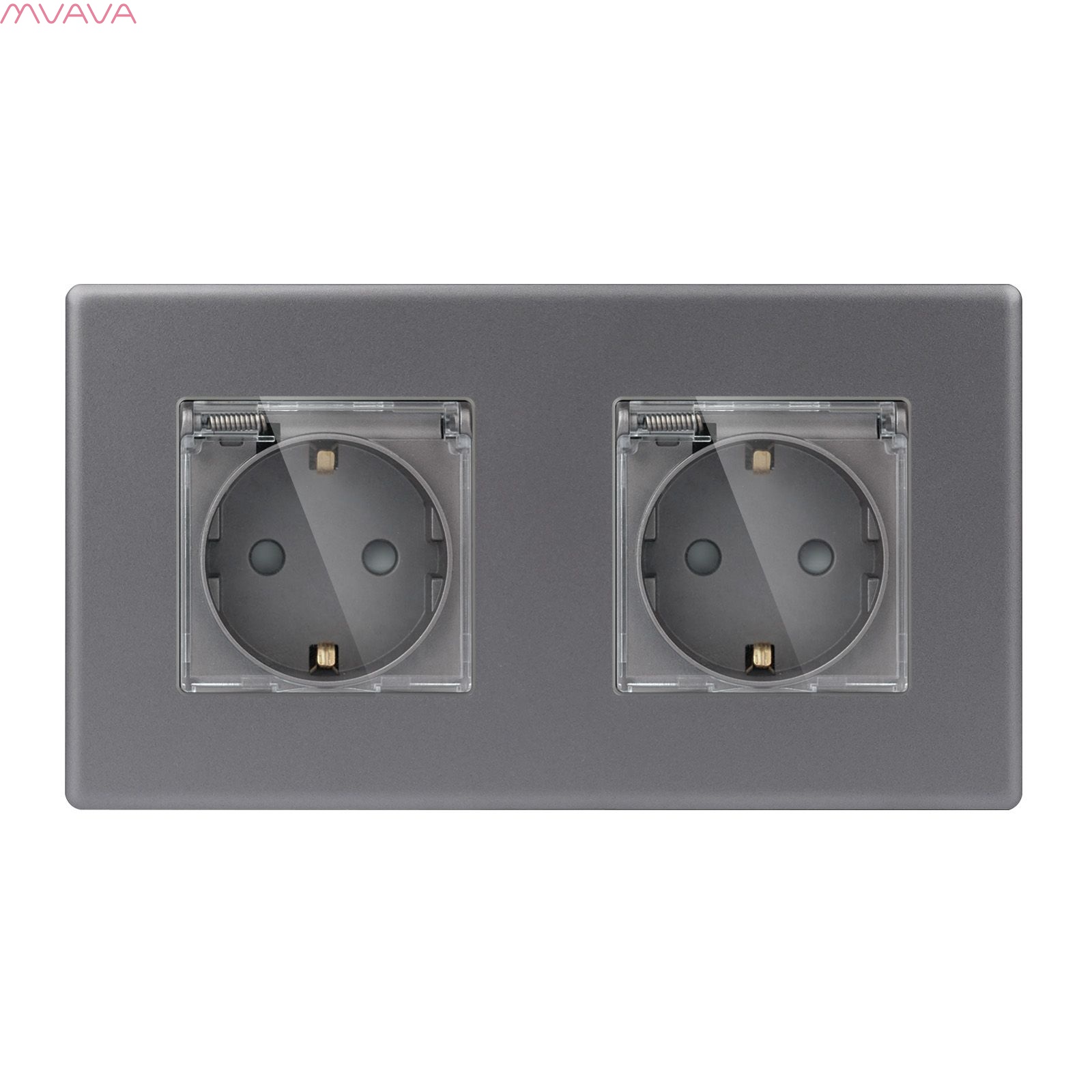 Розетка c крышкой, IP44 2 поста 16А, рамка 157х86мм пластик, цвет серый