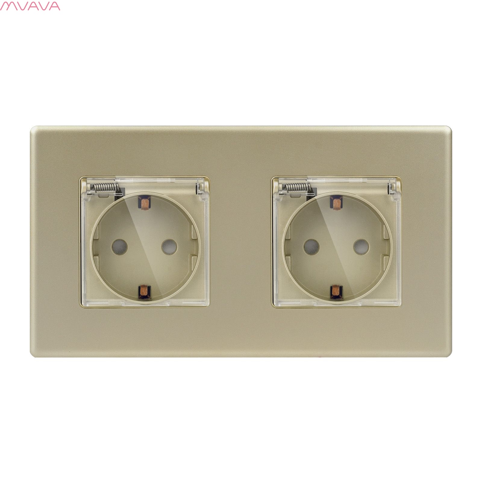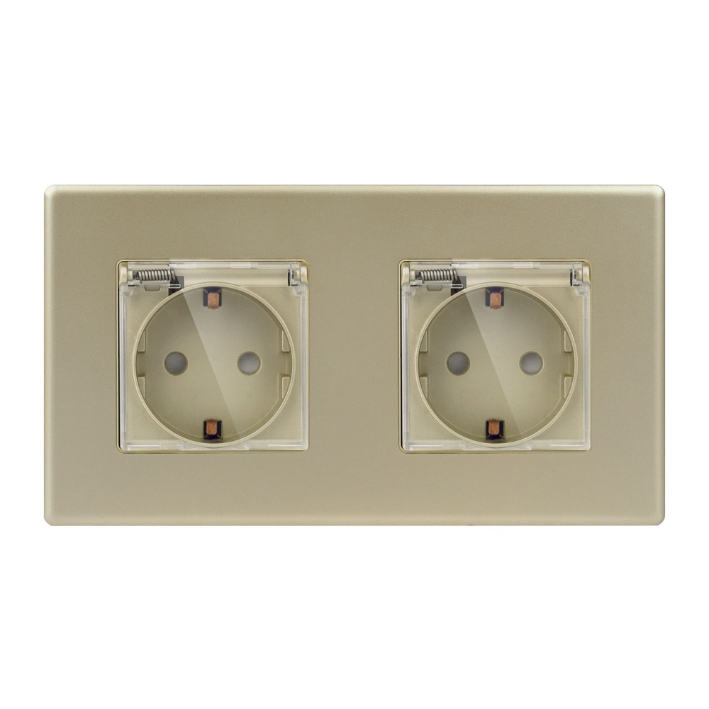 Розетка c крышкой, IP44 2 поста 16А, рамка 157х86мм пластик, цвет золотой