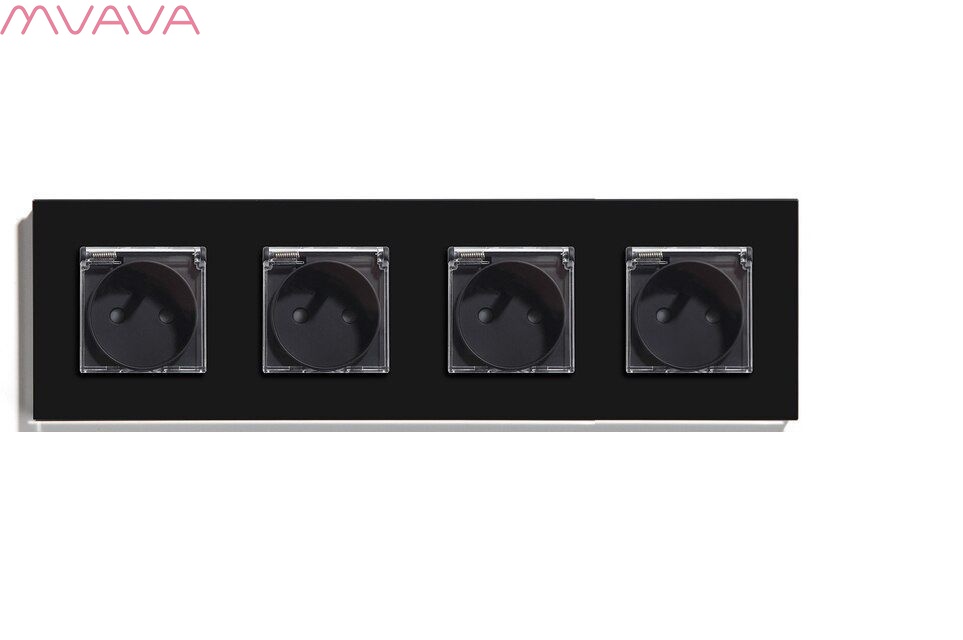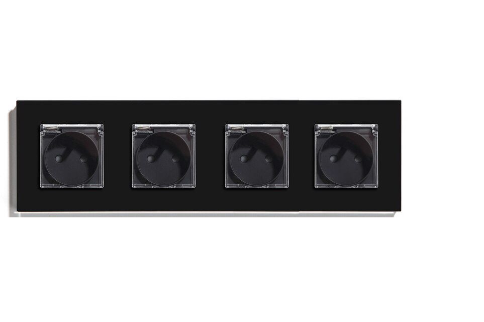 Розетка c крышкой, IP44 4 поста 16А, рамка 299х86мм пластик, цвет черный
