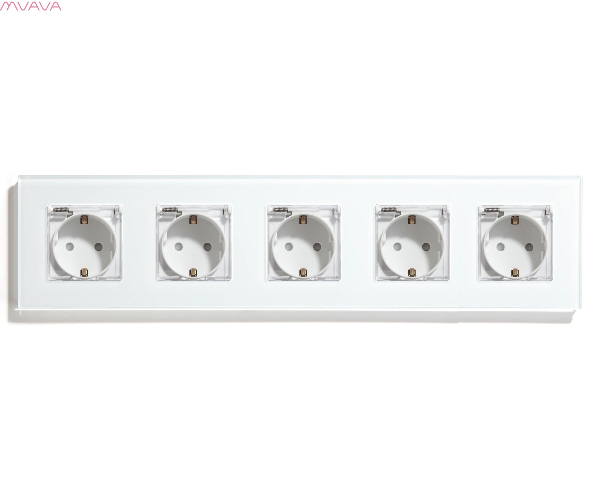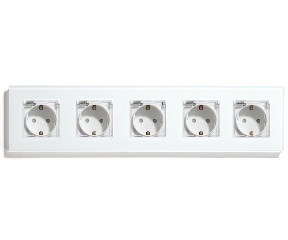Розетка c крышкой, IP44 5 постов 16А, рамка 370х86мм пластик, цвет белый