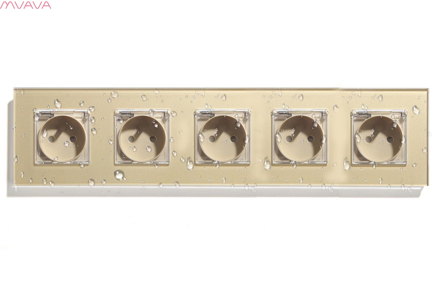Розетка c крышкой, IP44 5 постов 16А, рамка 370х86мм пластик, цвет золотой