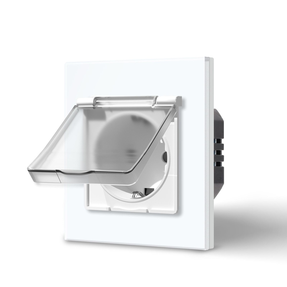 Обновленная версия, современная влагозащищенная розетка в стильном дизайне с рамкой из закаленного стекла и матовой крышкой. Идеальное решение для помещений с повышенной влажностью и требованием к эстетике.