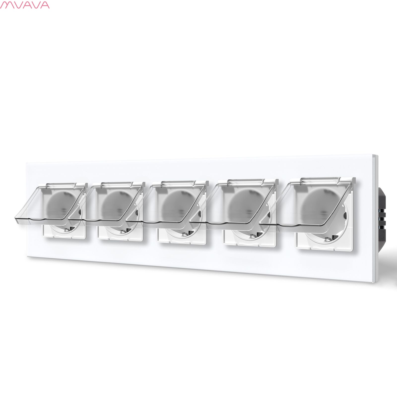 Розетка c крышкой, IP44 5 постов 16А, рамка 370х86 стекло, цвет белый
