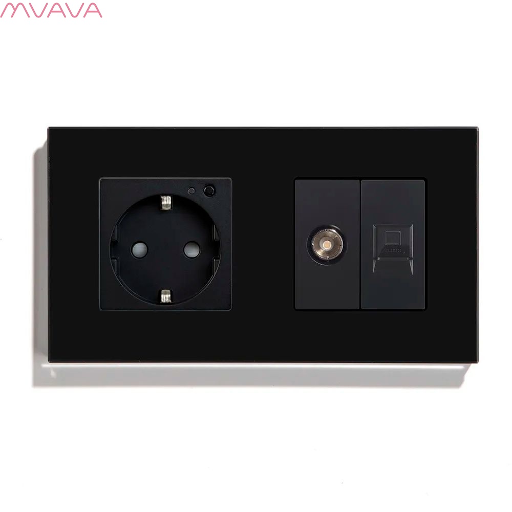 Розетка 2 поста с интернет/тв, cat5/tv, рамка 157х86мм стекло, цвет черный