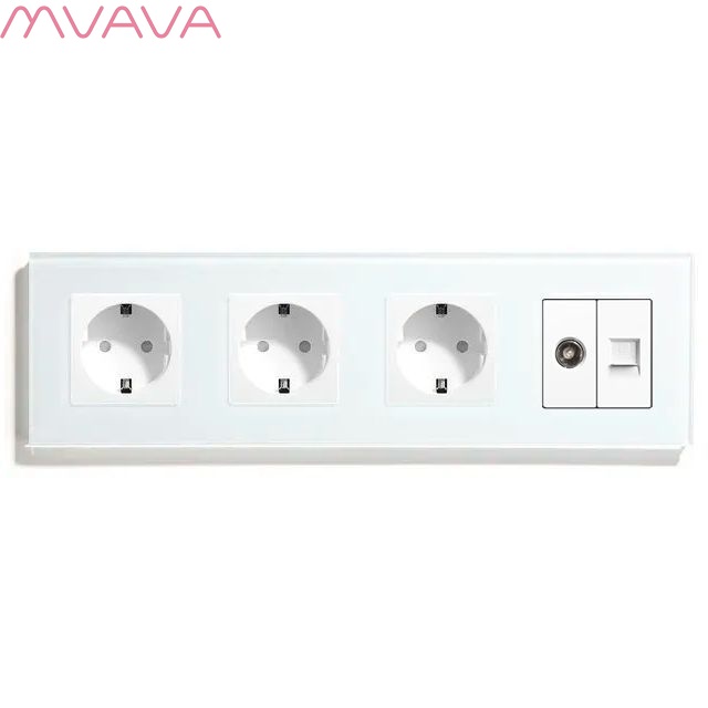 Розетка 4 поста с интернет/тв, cat5/tv, рамка 299х86мм стекло, цвет белый